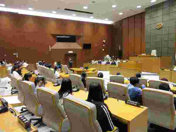 普段なかなか入ることのできない議場に入ることができ、驚いていました。