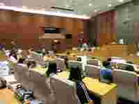 実際に使われている議場に入り、市議会議員に、質問をすることができました。