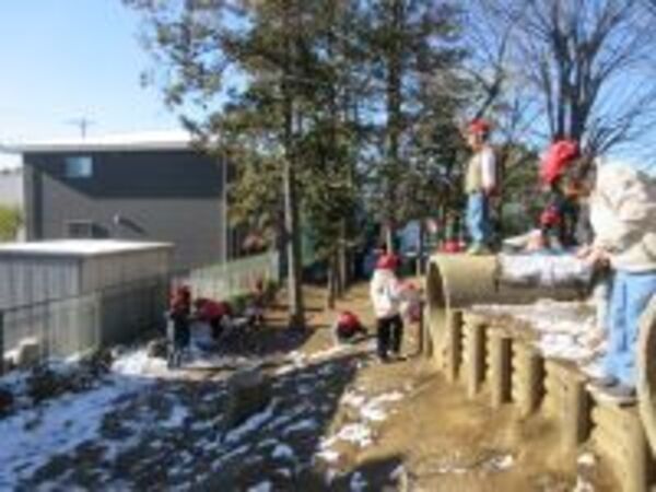 日曜日に雪が降り、校庭には、雪や凍った水たまり、つららが見られました。1年生は生活科の学習で、学年全体で外に出て冬を楽しみました。さいたま市では珍しい雪にはしゃぎながら、寒さを忘れ、皆楽しそうでした!